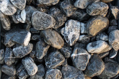 • Kamenclub.ru: Щебень галтованный черный (мрамор) фр.40-70 мм.  купить в Екатеринбурге мрамор черный с белыми прожилками, черный, белый щебень галтованный округлый 13500 руб/т   фото КАМЕНЬ КЛУБ